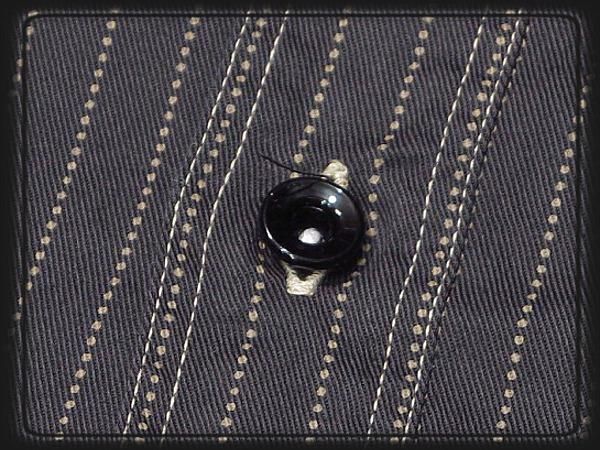 フロントのボタンはキッズオーバーオールなどに使用されていたドーナッツ型打ち込みタイプのメタルボタン。