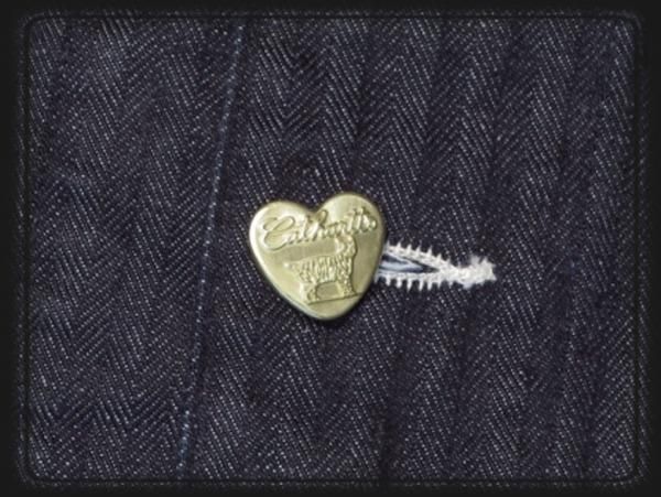 ハート型チェンジボタン、MASTER CLOTHネームにはCathartt(キャットハート)の文字が入ります。